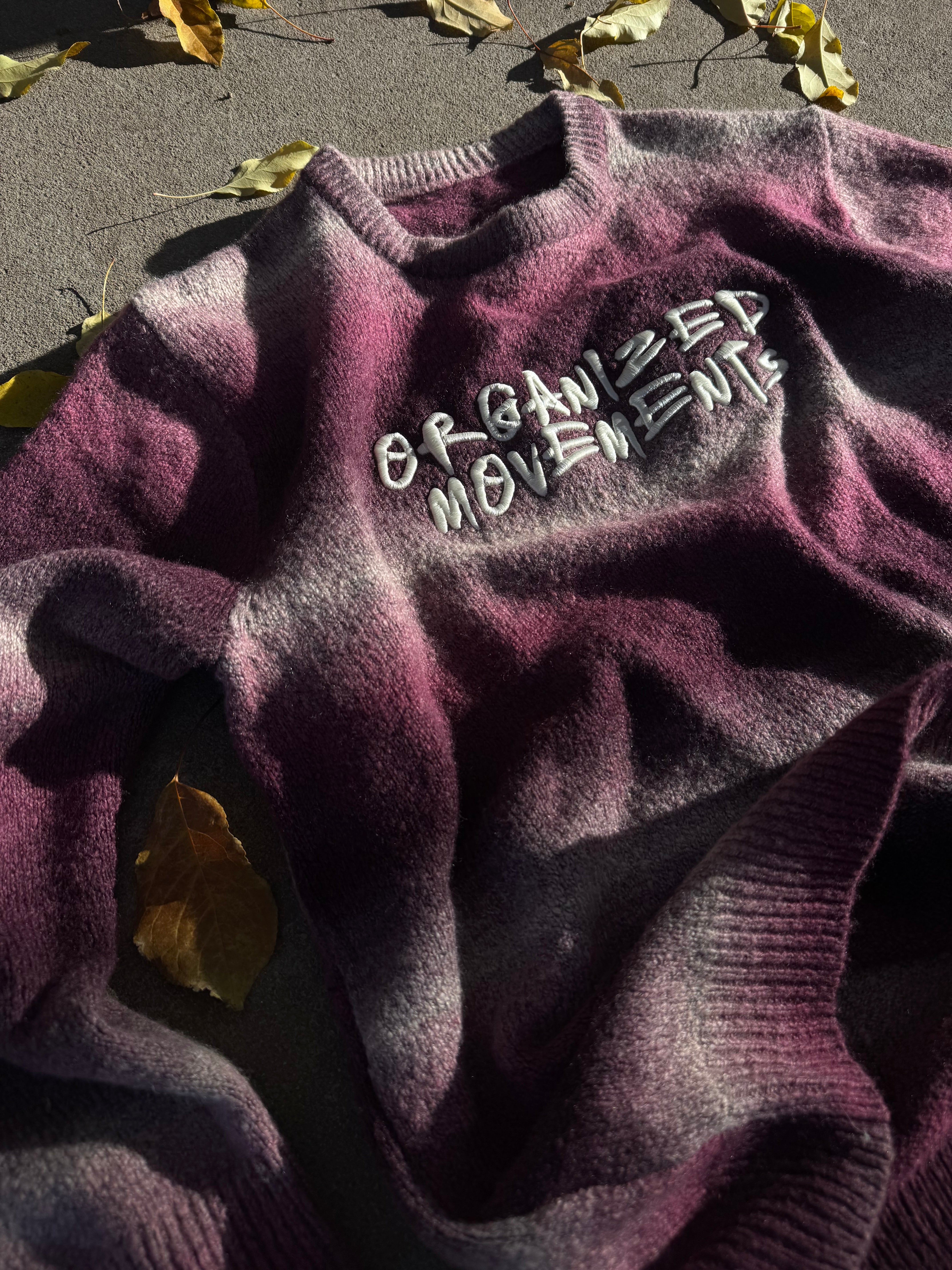 OM Gradient knitted sweater featuring Puff embroidery on the chest, Crafted from 74% cotton, 21% recycled polyester, and 5% spandex, they offer a soft, stretchy feel.